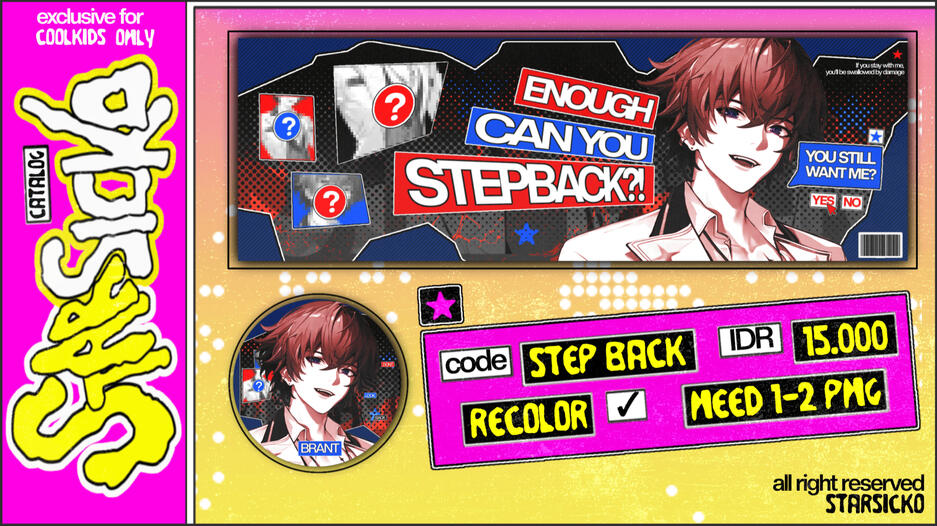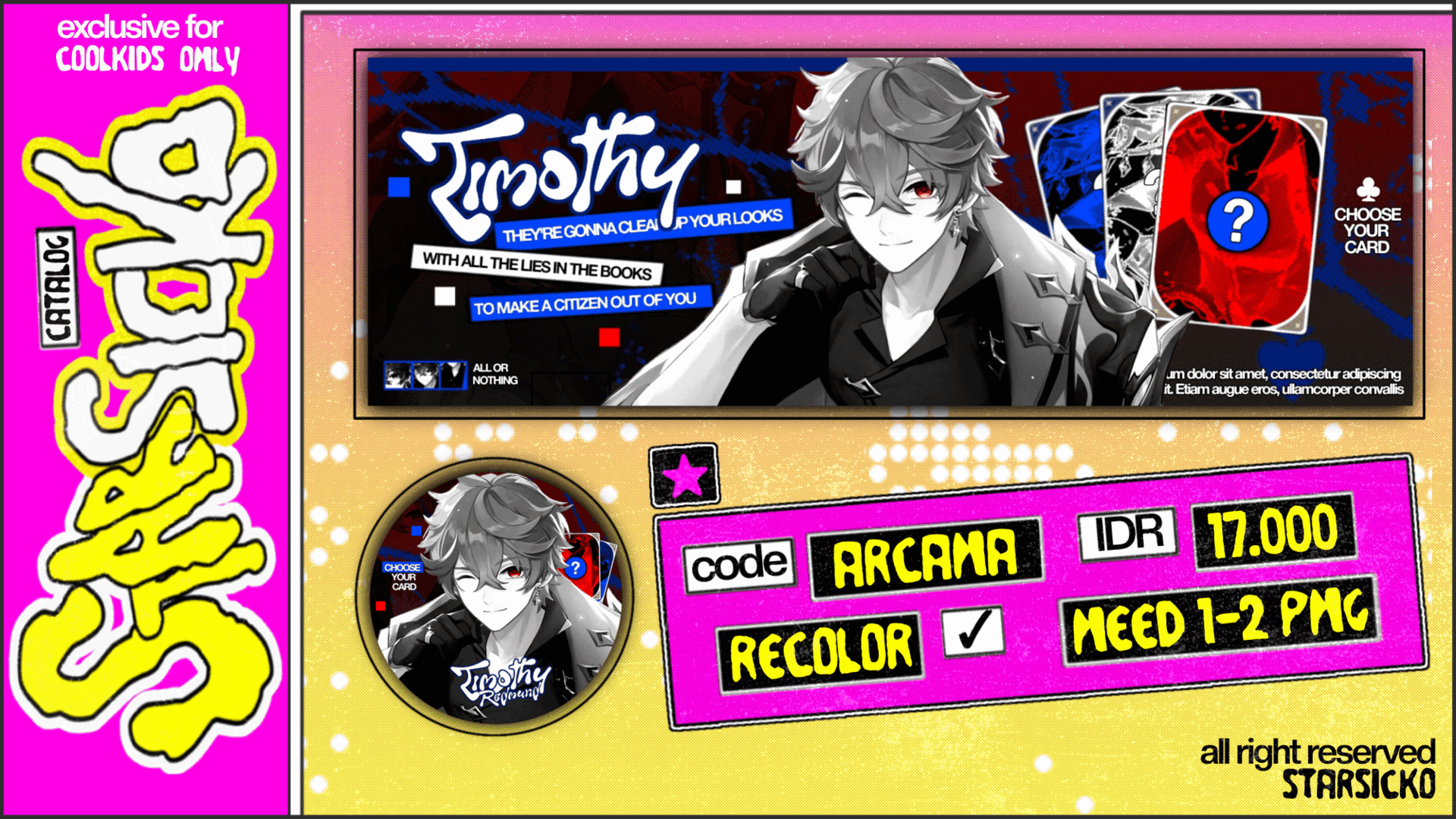 taking inspo, re-sell, recreate, heavy reference, stealing my design and my setup are highly prohibited. a fine of IDR.500.000 will be imposed for whoever did that.