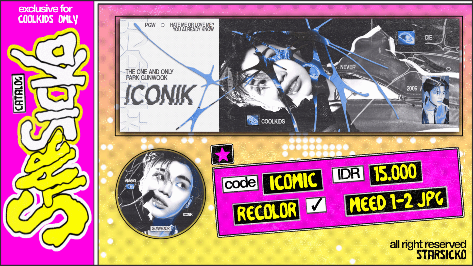 dilarang memakai render dan foto haram [re : konten leak, konten yang bersangkutan dengan boikot, konten perbayar, fansite, fanart, weverse untuk beberapa artis, phoning, bubble, etc]